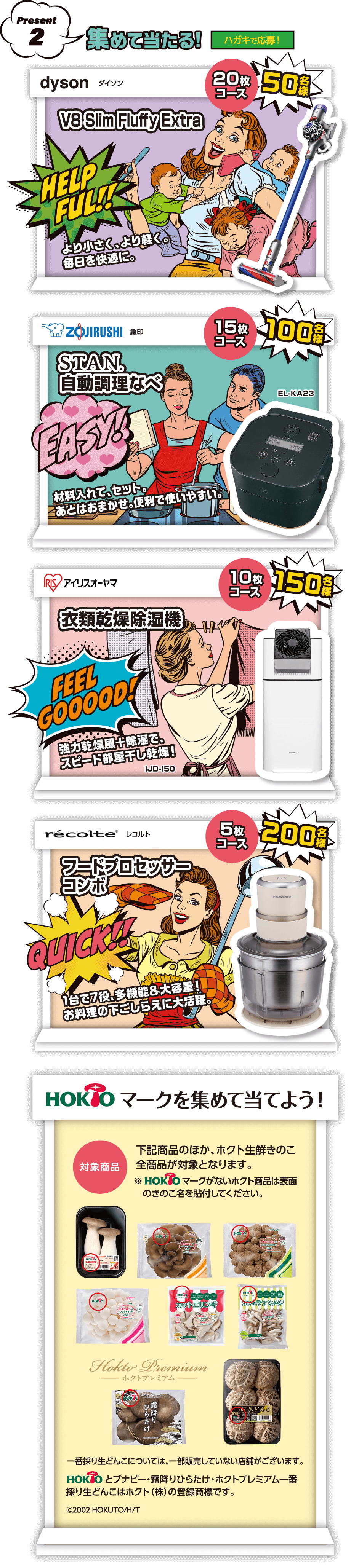 | 宛先 | 〒381-2299 長野南郵便局留 ホクト「家事を応援!!便利グッズプレゼント」係 |