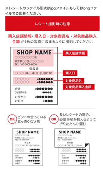 ・ご応募いただくレシート画像は、1枚の画像につき5MB以内のデータでお願いいたします。