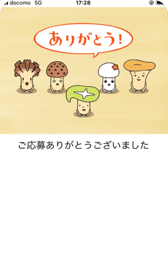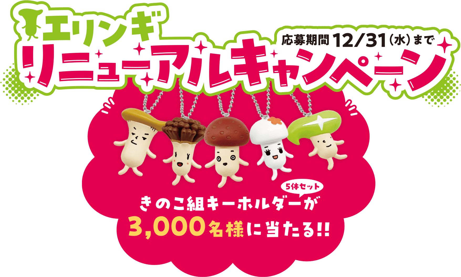 • 当選商品:きのこ組キーホルダー5体セット 合計3000名様