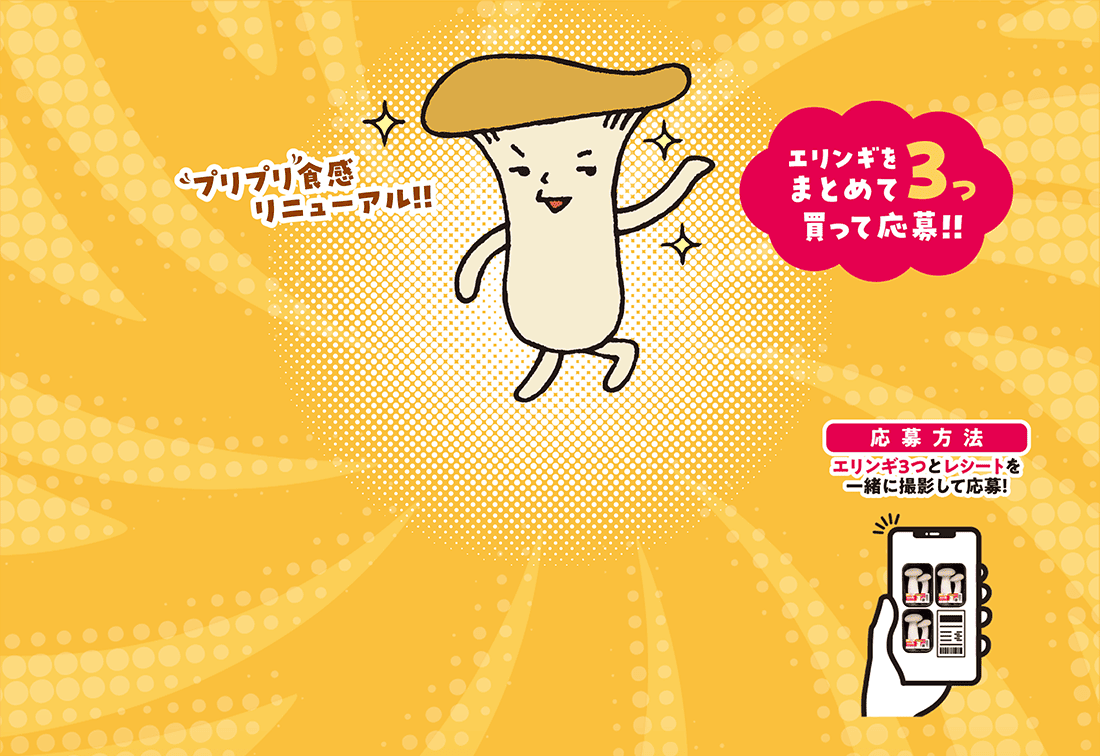 ホクト株式会社(以下、弊社)が主催する「エリンギリニューアルキャンペーン」にご応募いただく前に、本規約をよくお読みいただき、同意のうえ応募をしてください。ご応募された場合、本規約にご同意いただいたものとみなします。