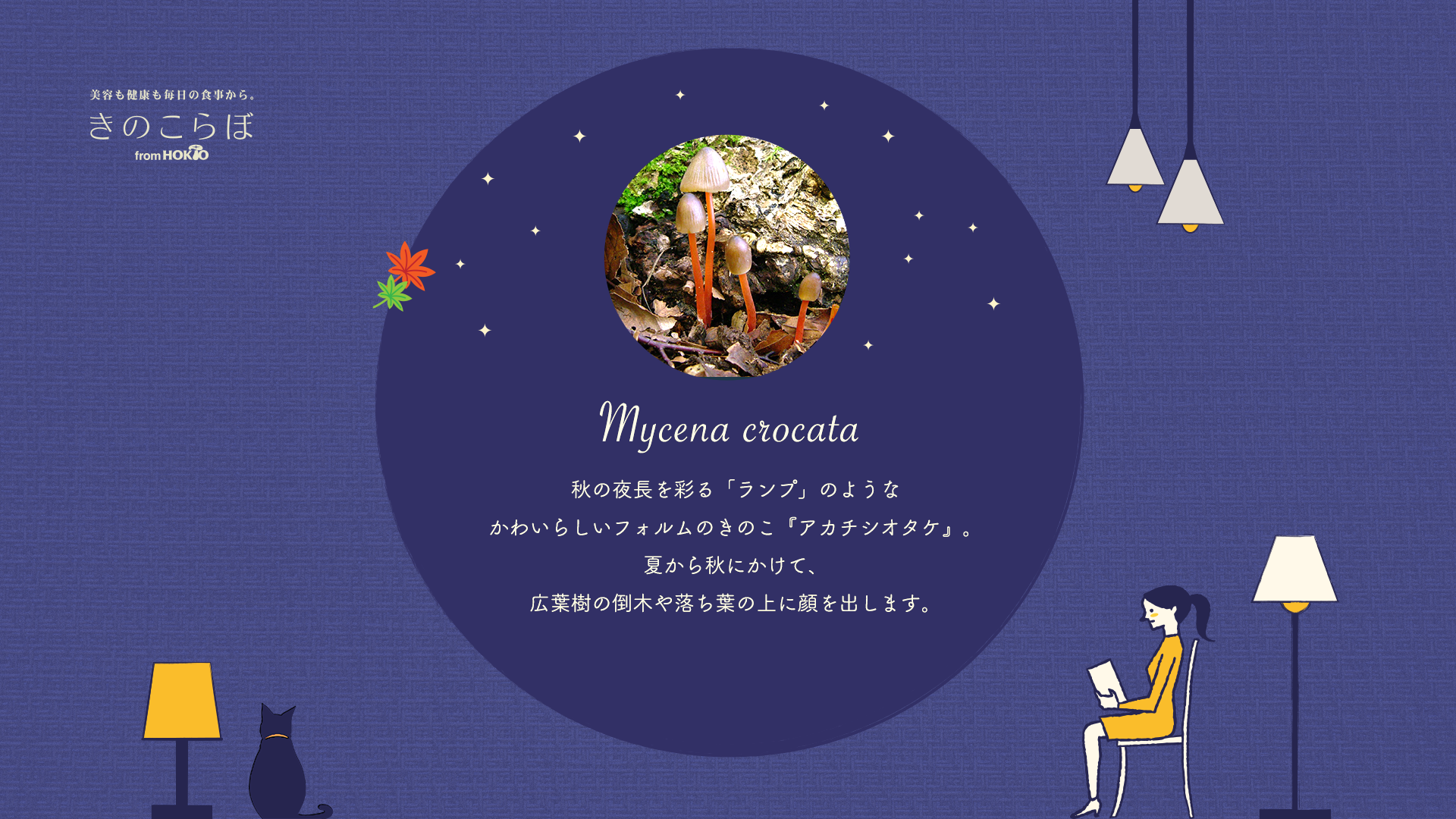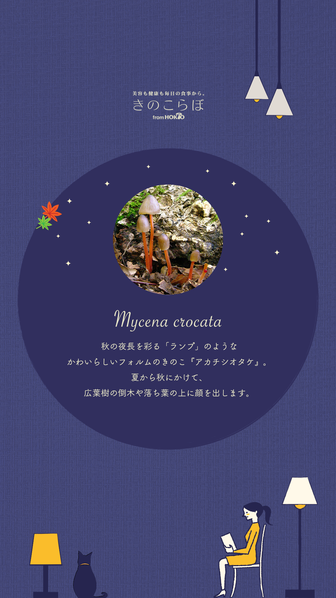 そこで今回は、秋の夜長を彩る「ランプ」のようなかわいらしいフォルムのきのこ『アカチシオタケ』をご紹介します。