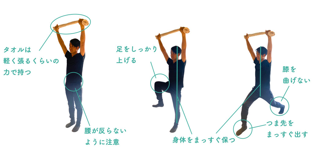 STEP1【タオル片足立ち→ランジ】