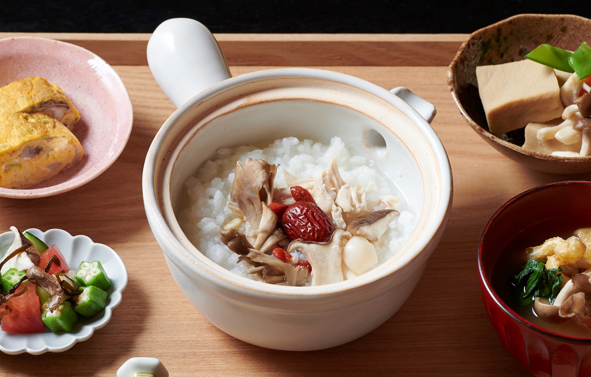 年の瀬は、不規則な食事で胃腸に負担がかかりやすい時期。そんなときにおすすめなのが、胃腸にやさしい消化のよいお粥です。お粥はエネルギー源を補えるだけでなく、塩麹に含まれるオリゴ糖が腸内の善玉菌のエサとなり、腸内環境を整えることを助けてくれます。さらに、きのこに豊富な食物繊維は、腸内細菌によって短鎖脂肪酸に変わり、悪玉菌の増殖を抑える働きがあります。また、短鎖脂肪酸は免疫機能の向上や代謝の改善をサポートするため、この時期の体調管理にピッタリの一品です。