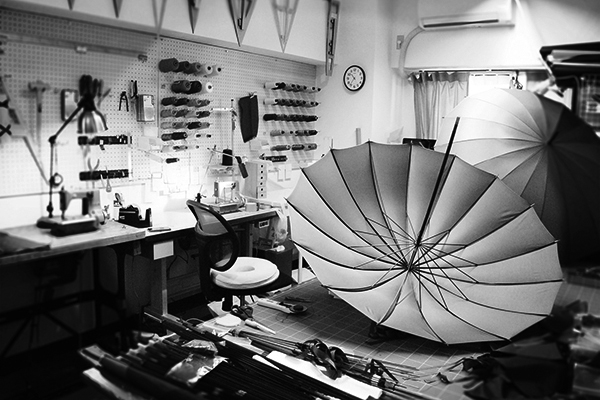 生地・骨・手元・加工の4つの工程を受け持つ匠の融合を重んじた傘づくり。