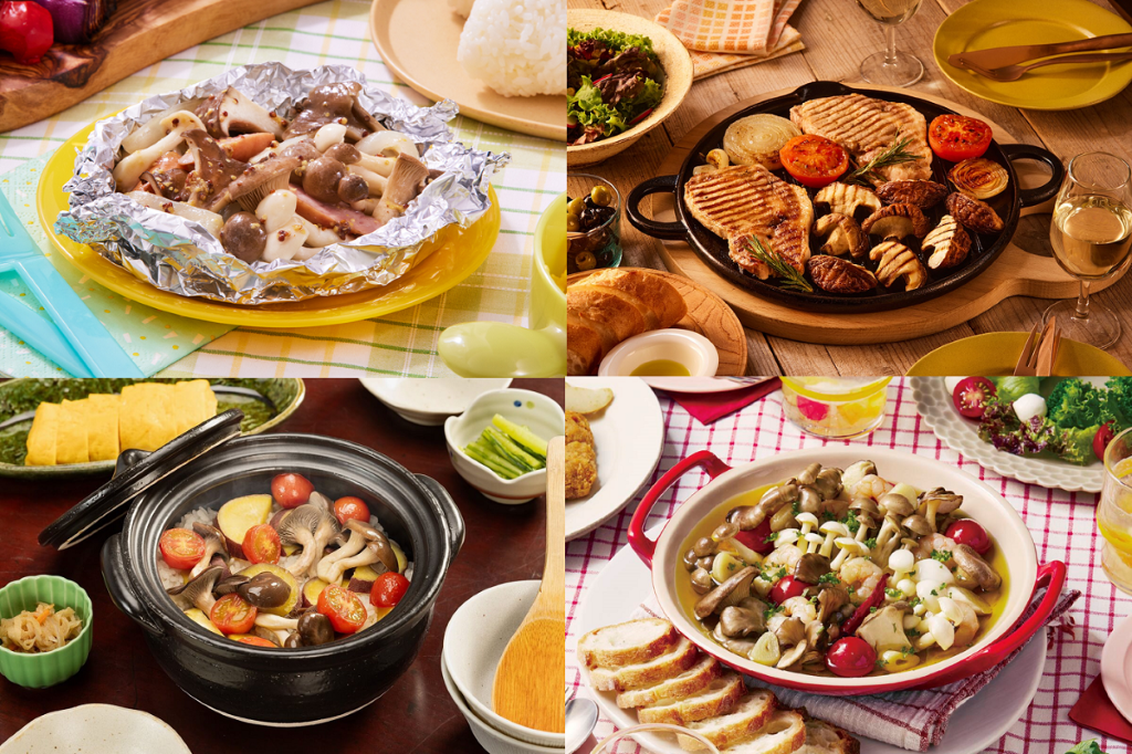 加えて、まだまだ紫外線の強いこの時期には、ベランダや屋外でグランピングを楽しむときに紫外線が気になる方も多いと思います。きのこには、紫外線による肌ダメージを回復させるビタミンB2やエルゴチオネインなどの栄養素も豊富に含まれていますよ。