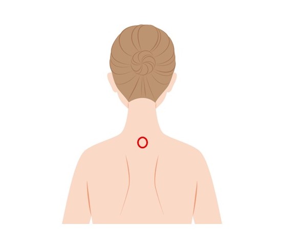 デスクワークなどで緊張しやすい首や肩周りの筋肉を緩める効果もあるため、心地よい刺激でほぐしてあげましょう。親指の腹をツボにあて、頭の中心に向かってゆっくりと圧をかけると、じんわりとした刺激が感じられます。