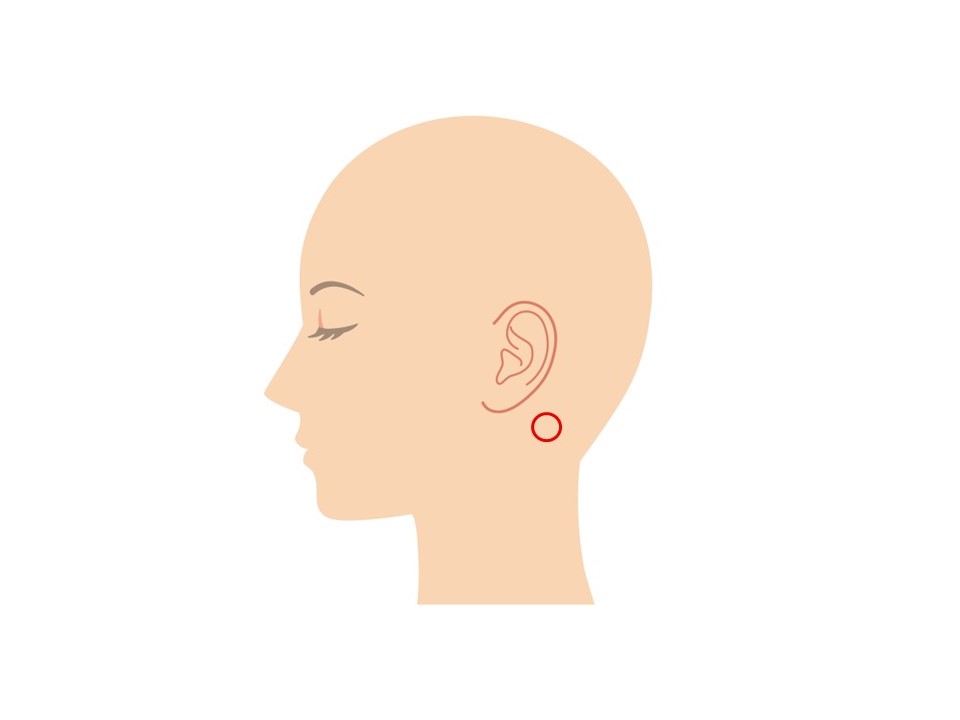 耳の後ろ側にある骨の先端から指1本分ほど下にあるくぼみにあります。