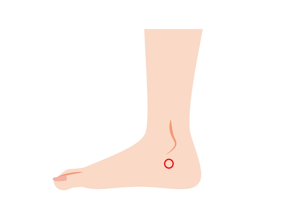 足の内くるぶしの真下から、親指一本分下がったくぼみにあります。