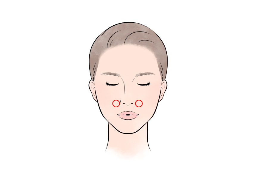迎香は文字通り「香りを迎える」ツボで、鼻が詰まってスッキリしないときや鼻の通りを良くして香りを感じやすくしたいときにおすすめです。人差し指や中指の腹を使い、自分が「気持ちが良い」と感じる程度の力で優しく押すのがポイントです。