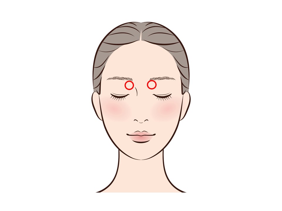 押すときは目を軽く閉じながら、中指や人差し指の腹を使い、円を描くようにじんわりと優しく押すのがポイントです。
