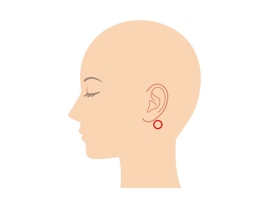 耳たぶの後ろの付け根にあるツボです。口を大きく開けたときにできる、へこみが目安になります。