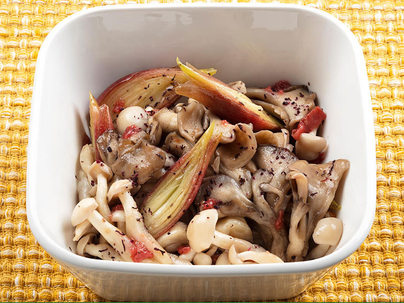 さっぱりとした梅の酸味と爽やかなみょうがの香りがきのこにマッチ!