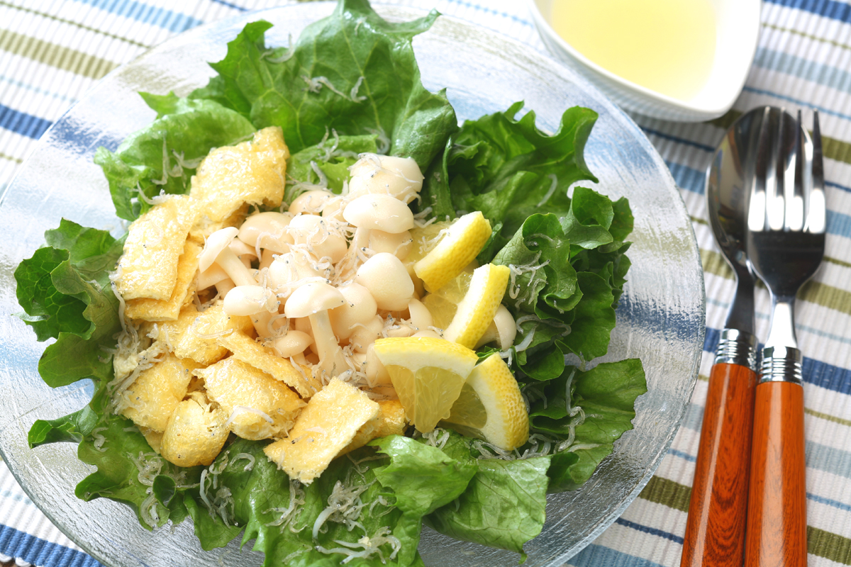 じゃこからカルシウム、レモンからビタミンCをしっかりとって、サラダに合うブナピーで美味しく、元気になりましょう。