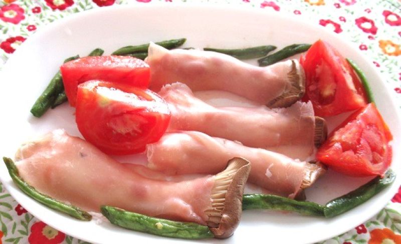 猛暑の中、梅の恵みを使って、乗り切ろうとしています。湯がいたエリンギに、練り梅をつけて、生ハムで巻いてみました。食が進みます~