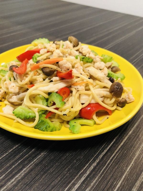 しめじとゴーヤのエスニック塩焼きちゃんぽん