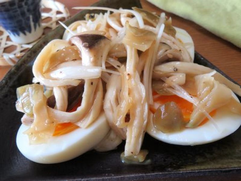エリンギザーサイねぎ和え ゆでたまごにのせて♪