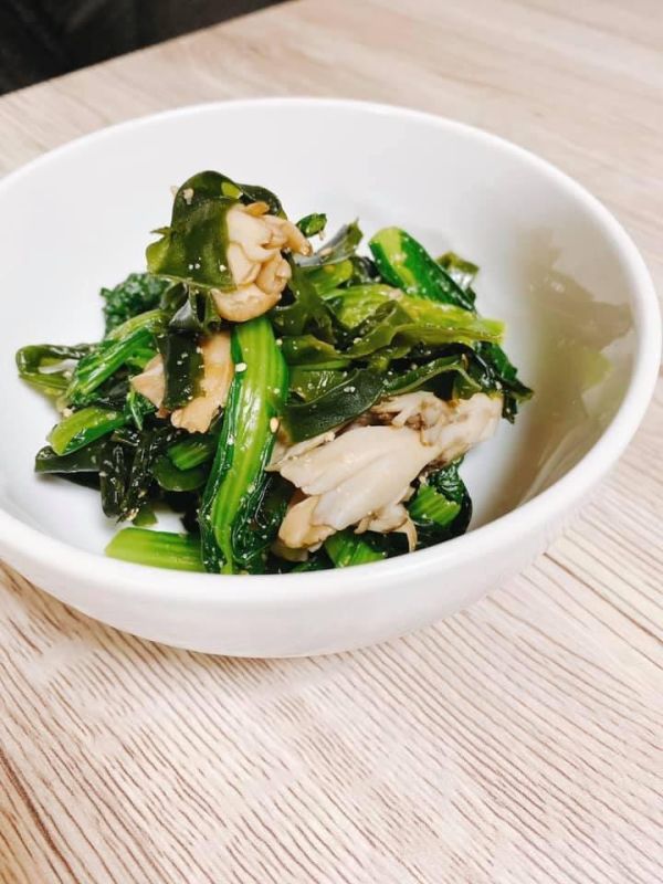 免疫アップ腸活【舞茸とワカメと小松菜の胡麻和え】