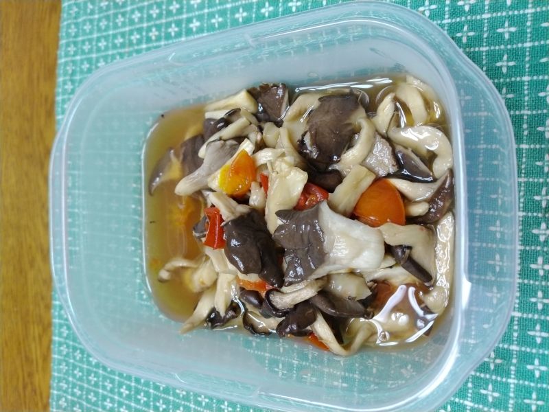 霜降りひらたけの食感と、プチとまとの酸味とお出汁が効いてサッパリとした1品です❣