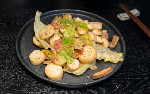エリンギとベーコンとレタスのマヨネーズ炒め