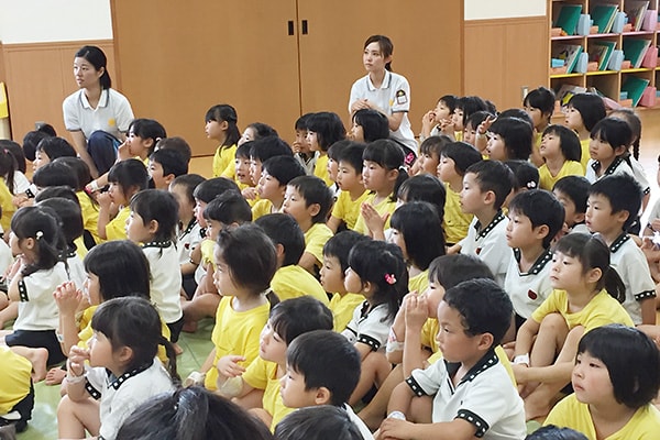 思い出動画 今日キャラバン隊がやってきたのは、 兵庫県神戸市内にある、星の子こども園です! お星さまみたいに、キラキラしたお友達に会えるかな~☆ 悪キング軍団につかまった先生を助けるために、 元気にきのこ体操をしよう! たくさん練習してたから、とっても上手にできたね♪ 無事に先生を助け出すことができました!(ヤッター!!) みんなきのこが大好きで、きのこだけ先に食べてたお友達も! 「きのこ食べたー!」って、キノちゃんたちに教えてくれました。 きのこをたくさん食べて、キラキラえがおでげんきのこ☆