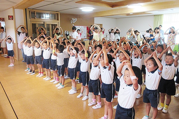 思い出動画 今日は静岡県浜松市内にある 瞳ヶ丘こども園におじゃましました。 南の島みたいなアスレチックがあったよ! みんなが大好きな遊び場なんだって♪ きのこのにおいをかいでみたり、 そーっとさわってみたりしながらワイワイたのしいもぎ取り体験! もぎ取ったきのこを大事そうにかかえて、 みんなとってもうれしそうだったね♪ きのこたっぷりのオムライス、とってもおいしそうだね~。 キノちゃんやエリンギくんに、 きのこを食べているところを見せてくれたね! みんな残さずきれいにいただきました♪