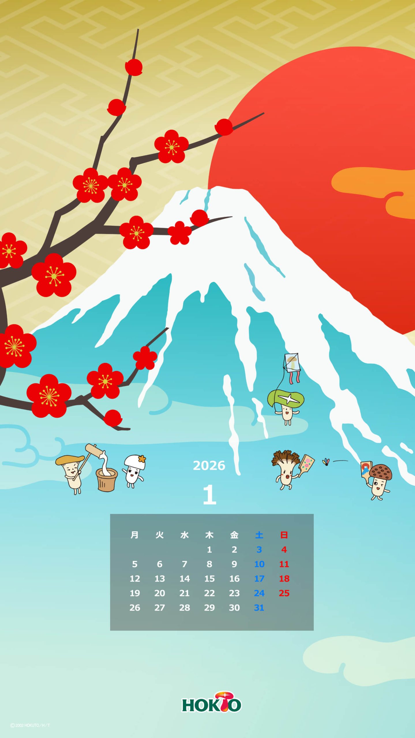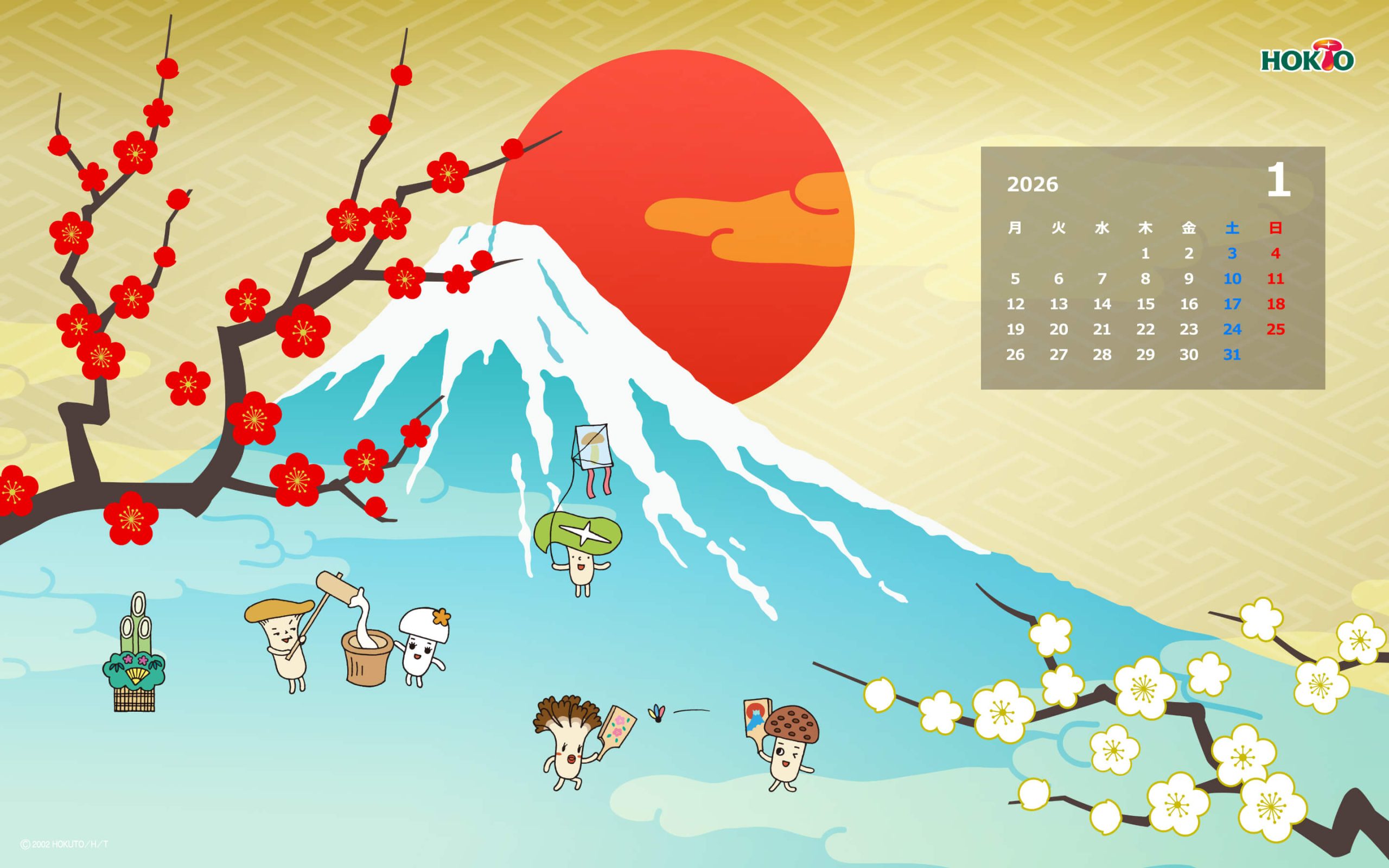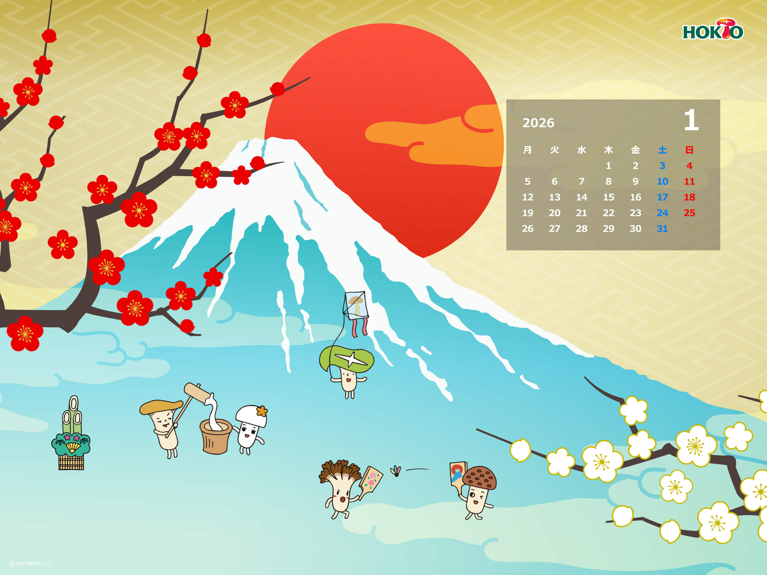 ホクトのキャラクター・きのこ組のかわいいイラストで壁紙をつくりました。