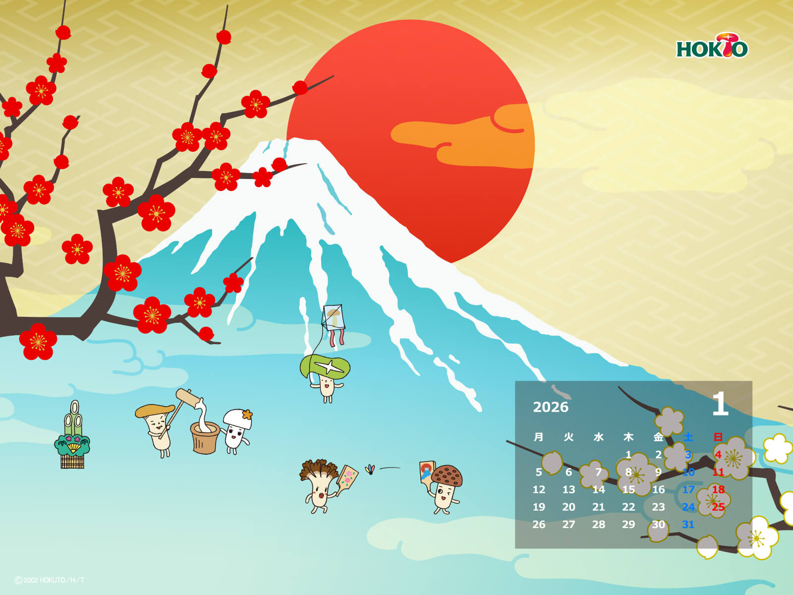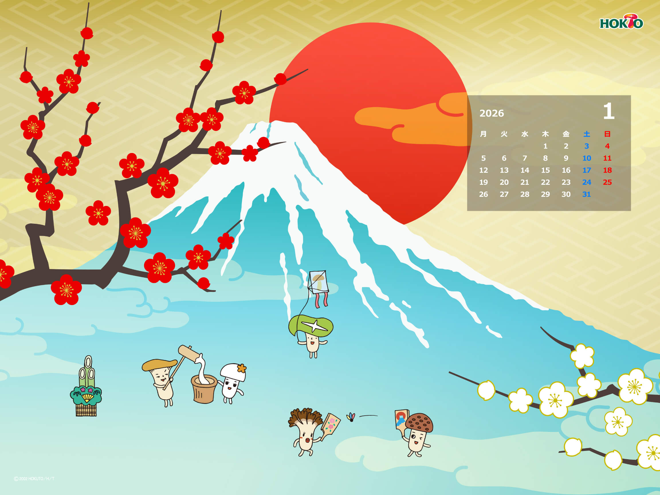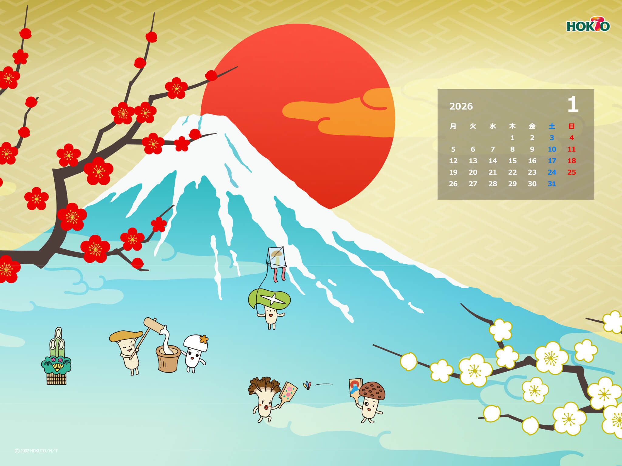 ホクトのキャラクター・きのこ組のかわいいイラストで壁紙をつくりました。